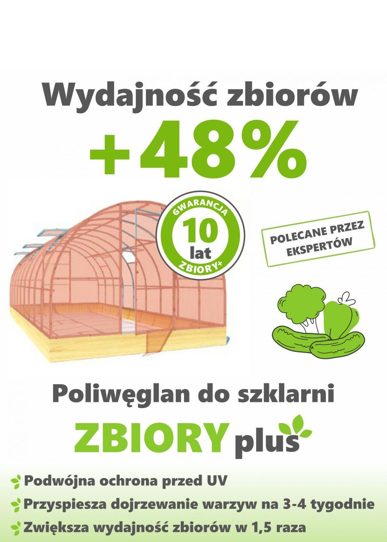 Poliwęglan komorowy Zbiory plus to nowatorski materiał do pokrywania szklarni, oranżerii i kompleksów roślinnych, nie mający odpowiednika na rynku poliwęglanów.