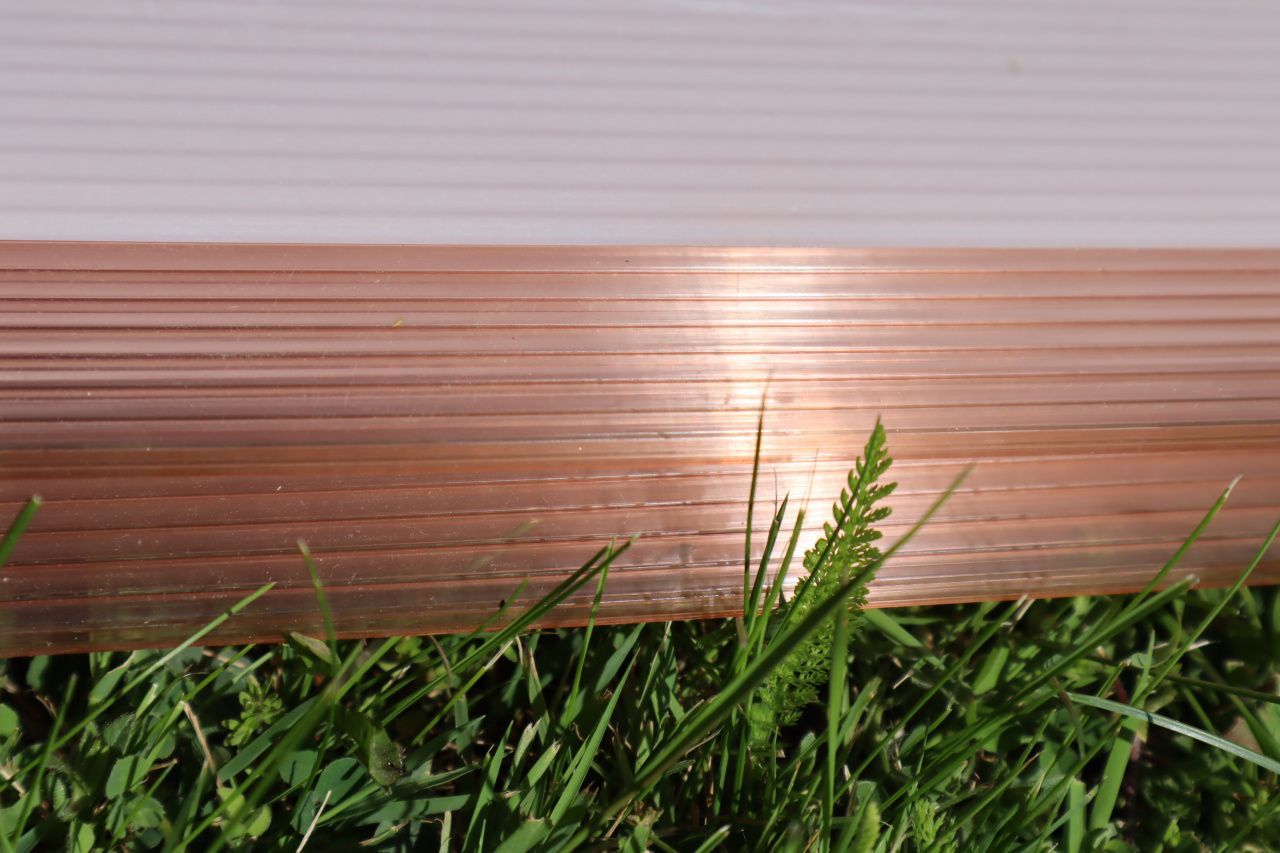 Przekształcający światło.Jasnoróżowe panele przepuszczają światło na równi z przezroczystymi płytami, ale są bardziej przydatne dla roślin ze względu na ich właściwości przetwarzania światła. Tworzą efekt emisji światła 660 nm, co odpowiada szczytowi fotosyntezy. Dzięki temu owoce dojrzewają 3-4 tygodnie szybciej.
